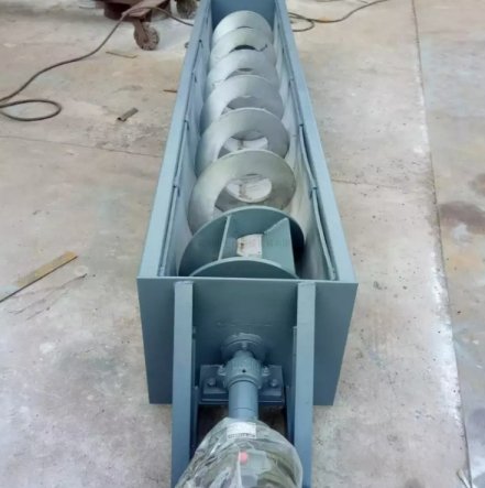 旋转的螺旋叶片将物料推移而进行螺旋输送机输送,使物料不与螺旋输送机叶片一起旋转的力是物料自身重量和螺旋输送机机壳对物料的摩擦阻力。螺旋输送机旋转轴上焊的螺旋叶片,叶片的面型根据输送物料的不同有实体面型、带式面型、叶片面型等型式。螺旋输送机的螺旋轴在物料运动方向的终端有止推轴承以随物料给螺旋的轴向反力,在机长较长时,应加中间吊挂轴承。
